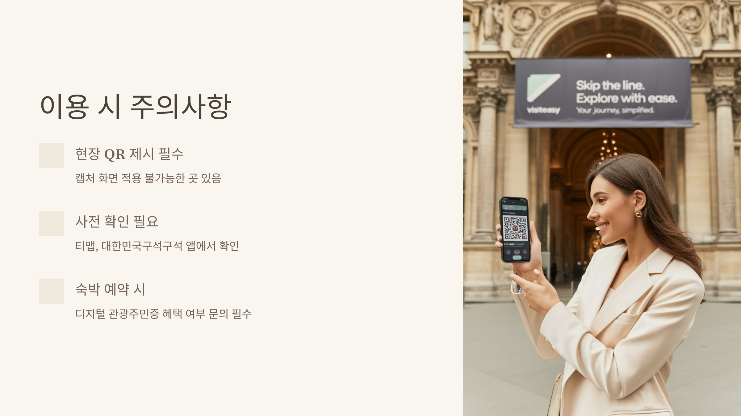 현장발권 시 QR코드 제시 필수.